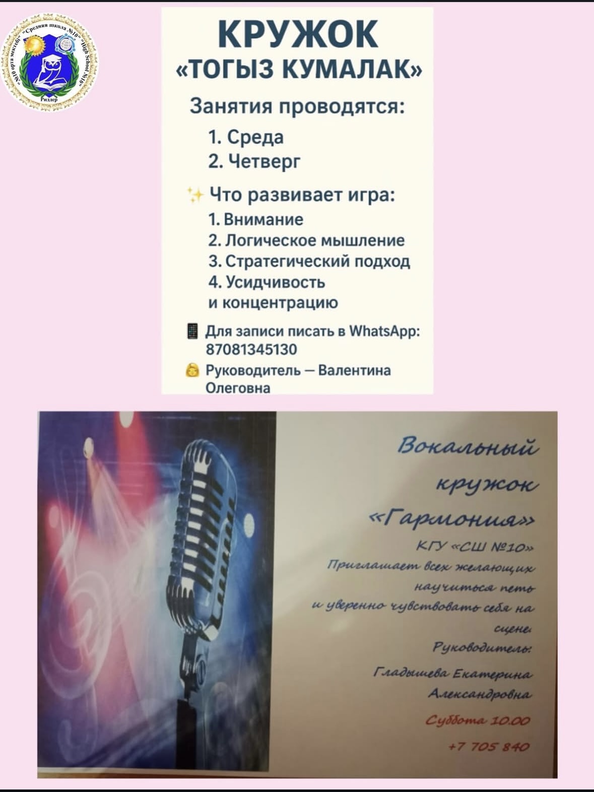 КГУ «Средняя школа №10» приглашает детей в бесплатные кружки!
