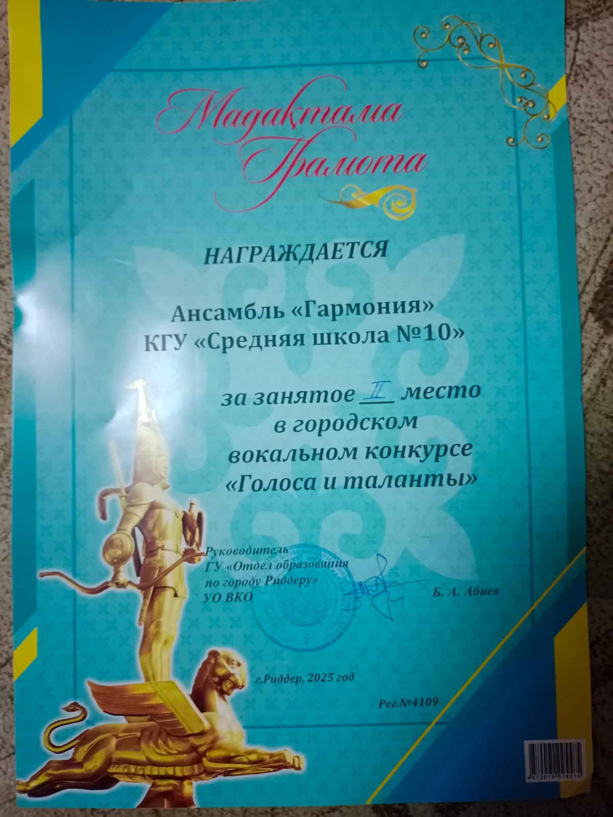 Ансамбль «Гармония» КГУ «Средняя школа №10» достойно представил нашу школу и завоевал 2 место в городском вокальном конкурсе «Голоса и таланты»!