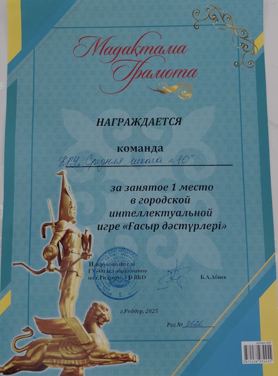 Команда КГУ «Средняя школа №10» заняла 1 место в городской интеллектуальной игре по истории «Традиции веков» среди школ города