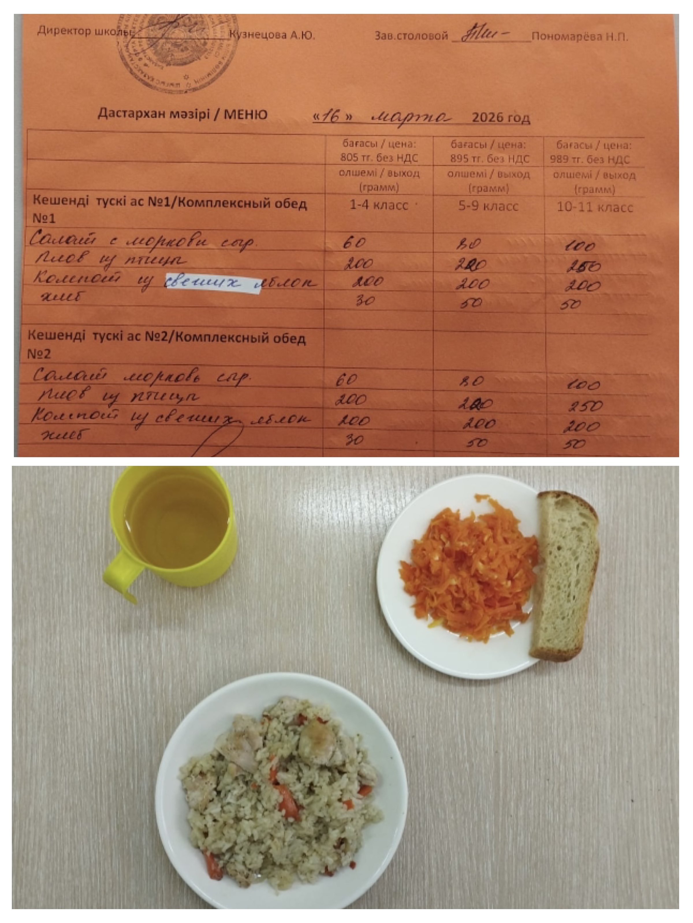 Питание школьной столовой 16.03.26 г