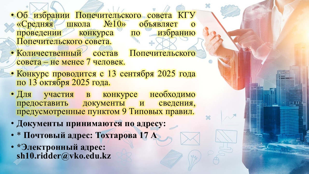 18 октября в КГУ «Средняя школа №10» состоялось заседание Попечительского совета.