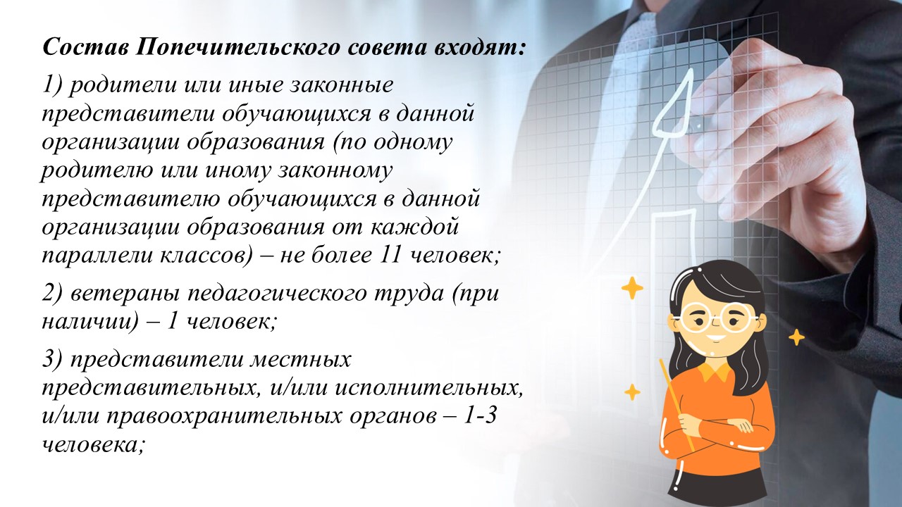 Состав попечительского совета школы 9 человек.