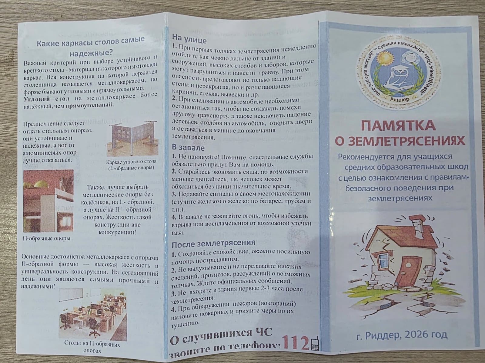 В ходе занятия учащимся были даны практические рекомендации по обеспечению личной безопасности во время сейсмической активности.