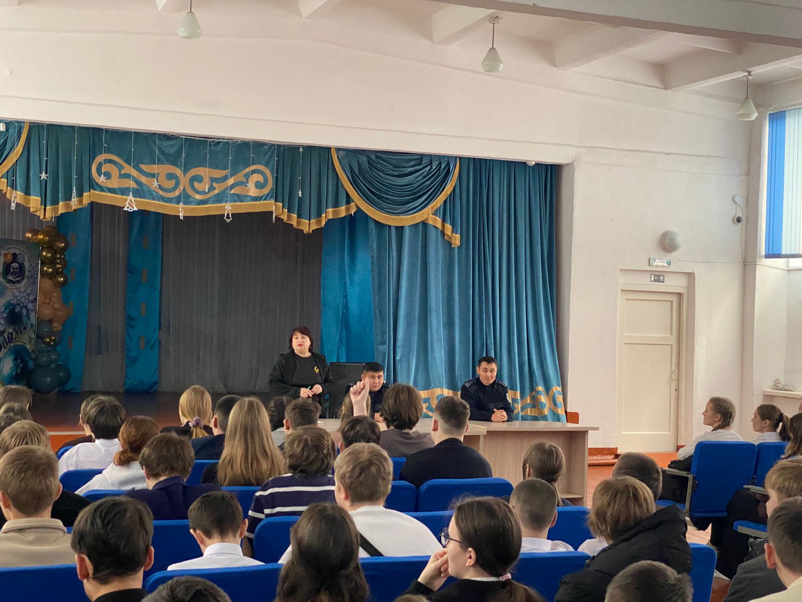 В школе состоялось открытие Месячника правового воспитания и Единые уроки безопасности с участием сотрудников полиции г. Риддер в рамках идеологемы «Закон и порядок».