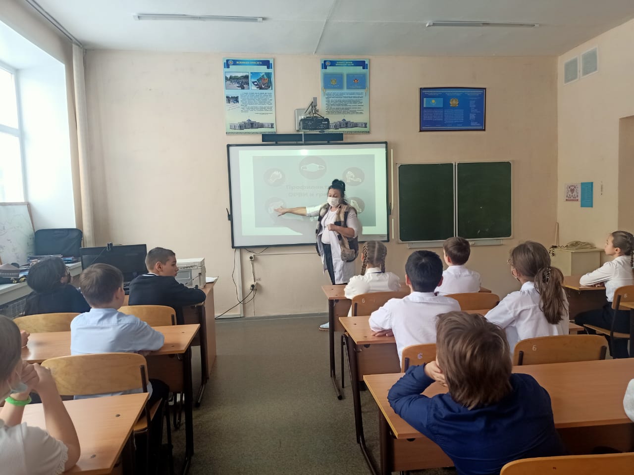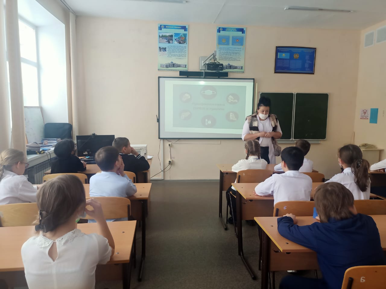 В 5 «Б» классе проведена лекция на тему «Профилактика ОРВИ и гриппа»*, организованная школьным фельдшером*.