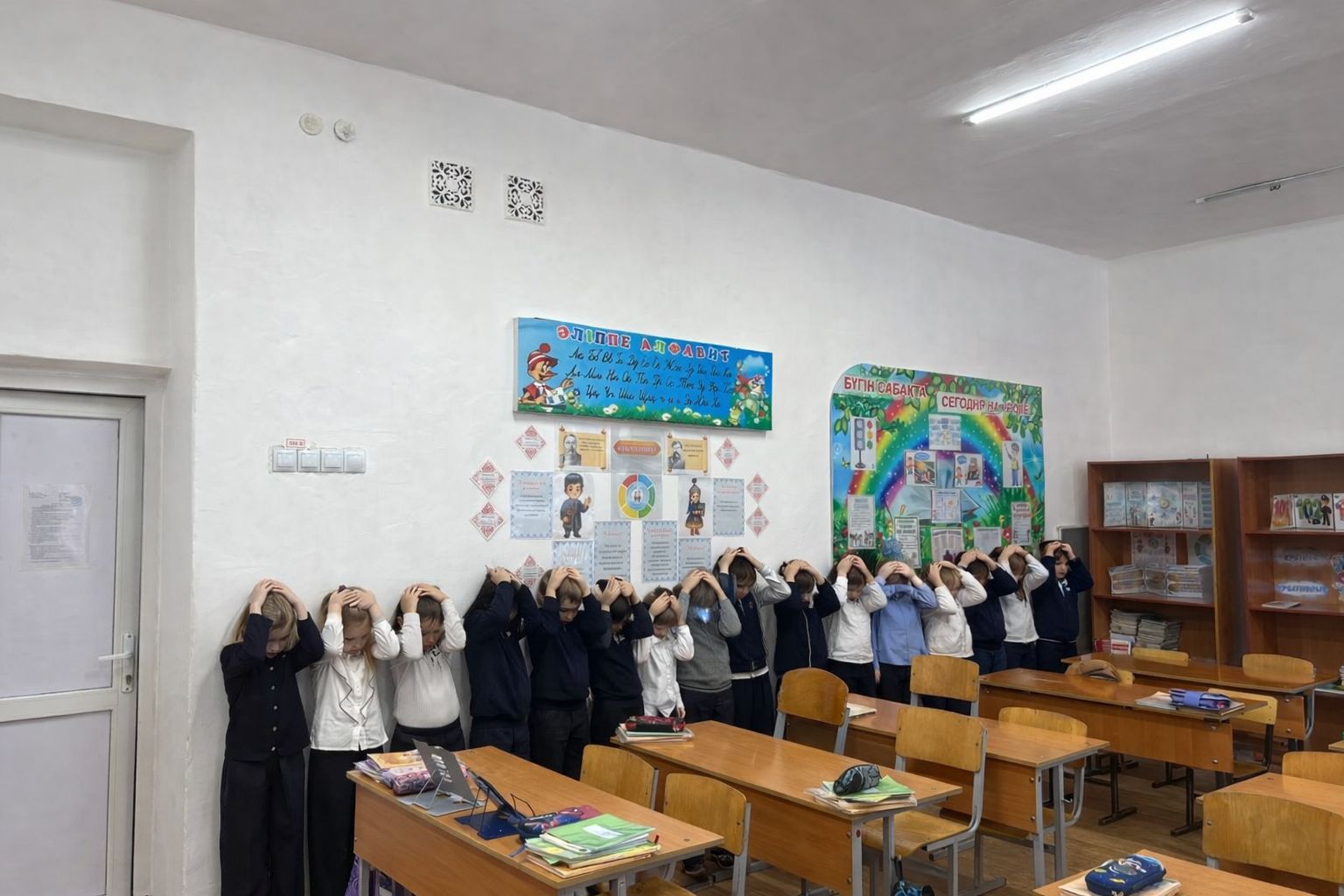 В рамках месячника по подготовке населения ВКО к действиям при возникновении землетрясения учащиеся начальной школы на классном часу «Что делать, если началось землетрясение?» отработали алгоритм действий «Присядь — закрой голову — держись». Безопасность начинается со знаний!