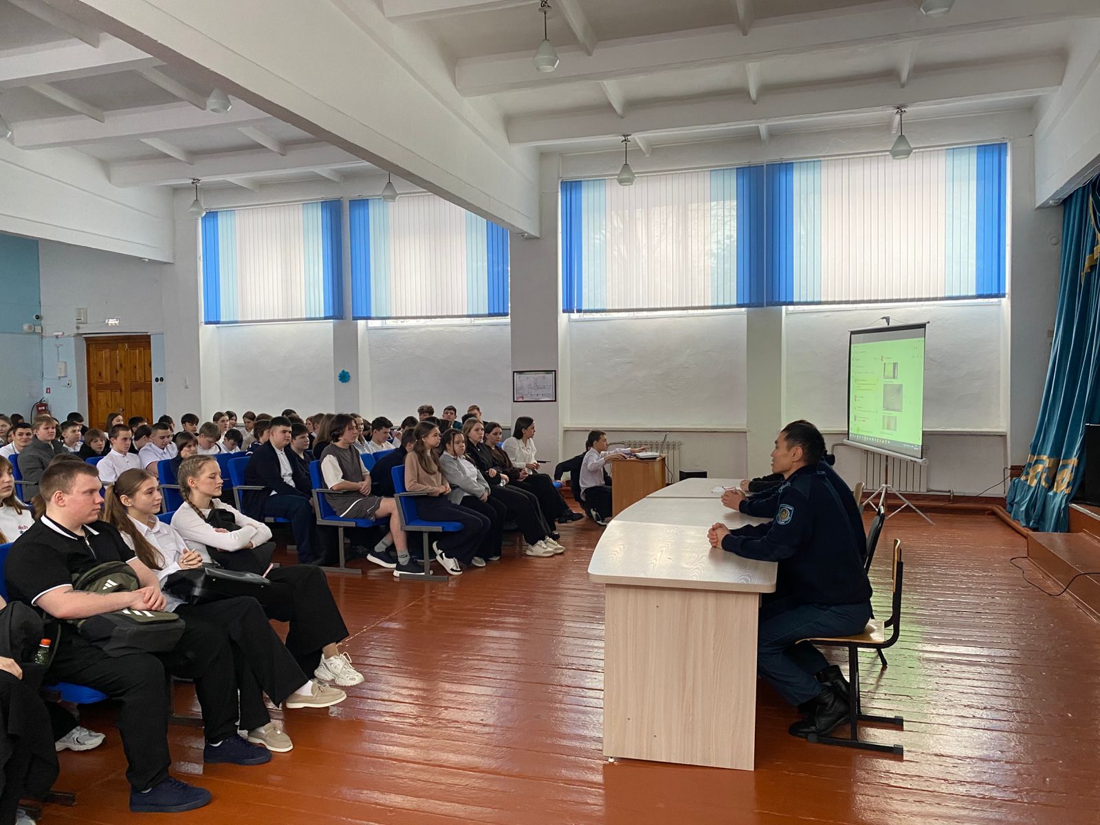 В КГУ «Средняя школа №10» в рамках месячника «Закон и порядок» для обучающихся 7–11 классов прошёл единый правовой час с участием сотрудников правоохранительных органов.